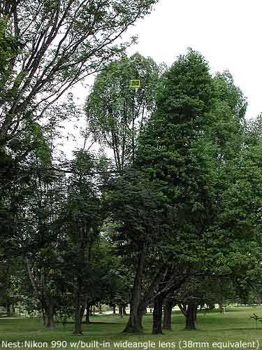 The rectangular box is where the nest is with wideangle lens without spotting scope and the next picture shows the Crested Honey-Buzzard in the nest when digiscoped.
